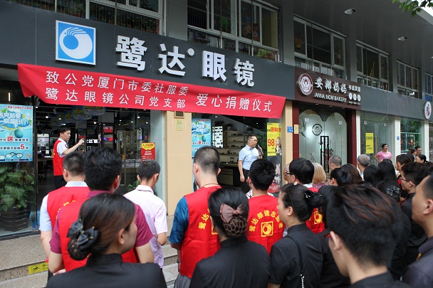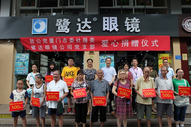 7月8日,我司在总部门口隆重举行了向厦门市思明区厦港街道居民及贫困生的眼镜捐赠仪式。