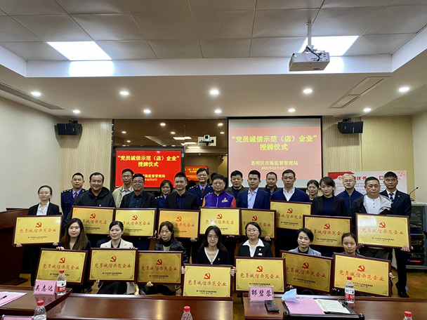 12月17日,党支部书记朱小波参加了由思明区市场监督管理局举办的“党员诚信示范企业”授牌仪式,并作为企业代表在会上做了分享。
