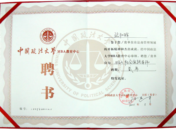 5月2日下午,在厦门华侨大酒店举行的“鹭达杯 法商论剑 鹭岛听涛”论坛上,中国政法大学MBA教育中心鉴于鹭达眼镜董事长张和辉在法商管理领域的开拓精神和杰出成绩,特聘请他为中国政法大学MBA社会实践导师,政法大学MBA教育中心孙选中主任还为张董颁发了聘书。
